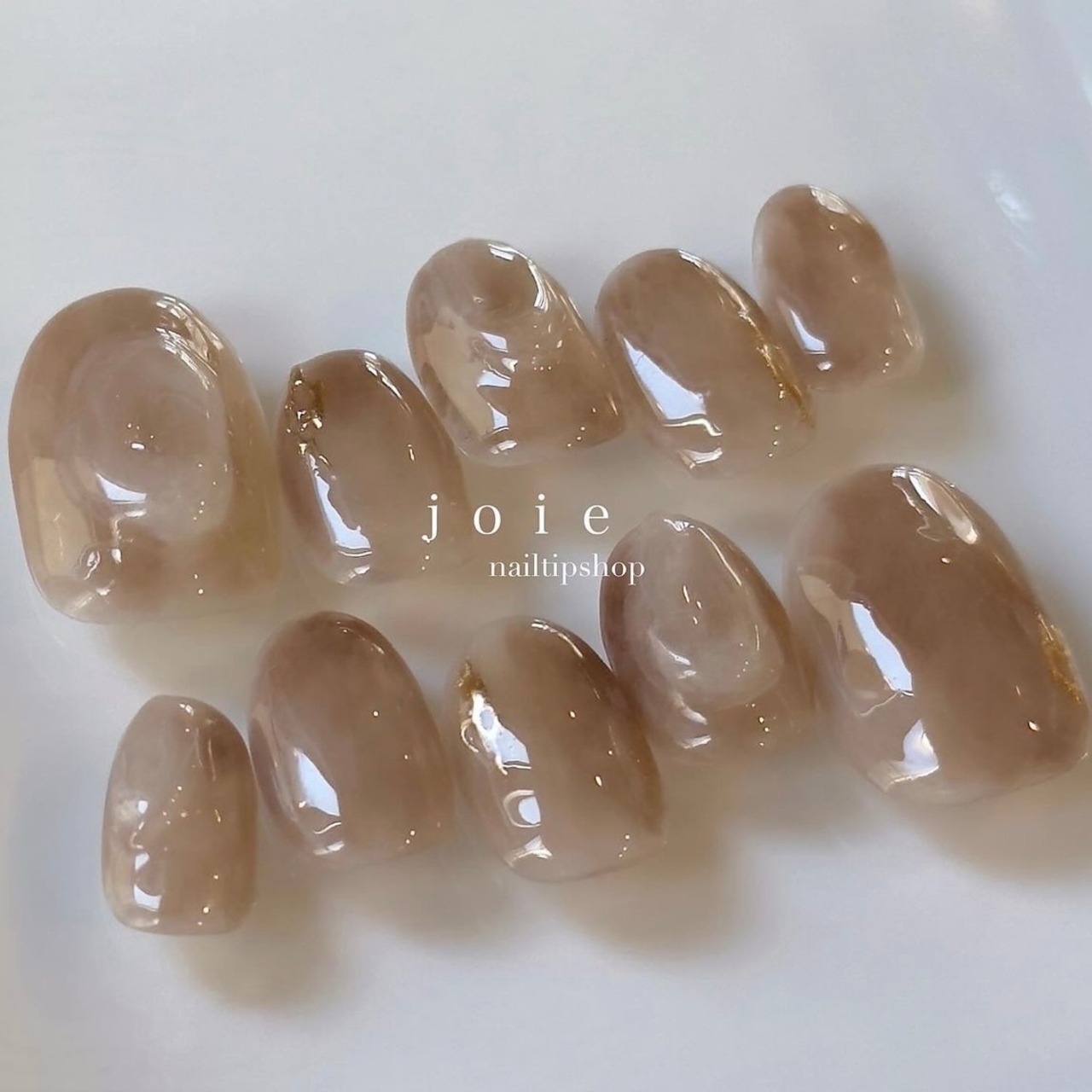 ネイル/ネイルチップ/ブラウン/うるうる/シンプル/うるつや/キラキラ/ぷっくり/ニュアンス/韓国
