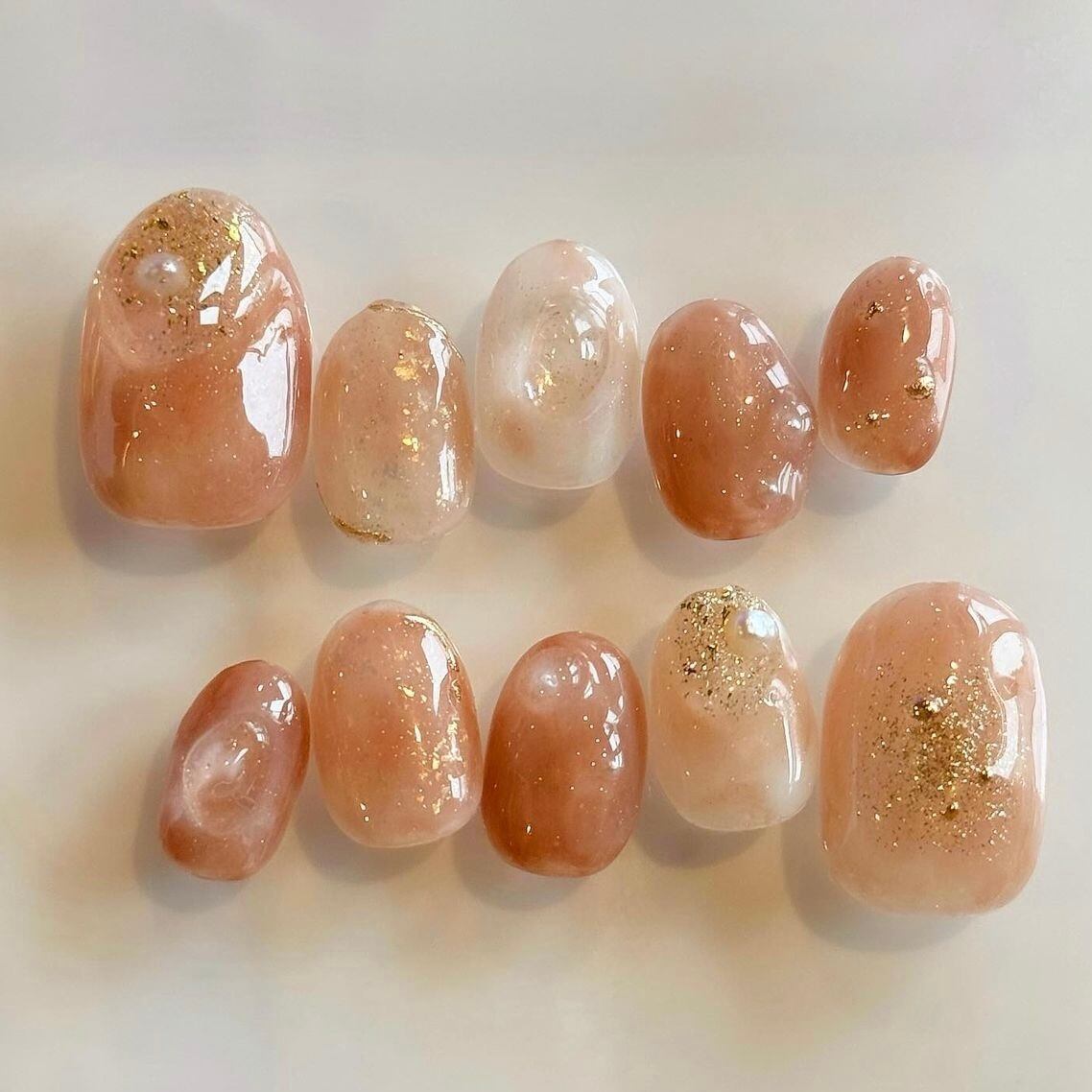 ネイル/ネイルチップ/うるうる/シンプル/うるつや/キラキラ/ぷっくり/ニュアンス/韓国/もやもや/ピンク/ぴんく/ピンクブラウン/ちゅるん/キラキラ