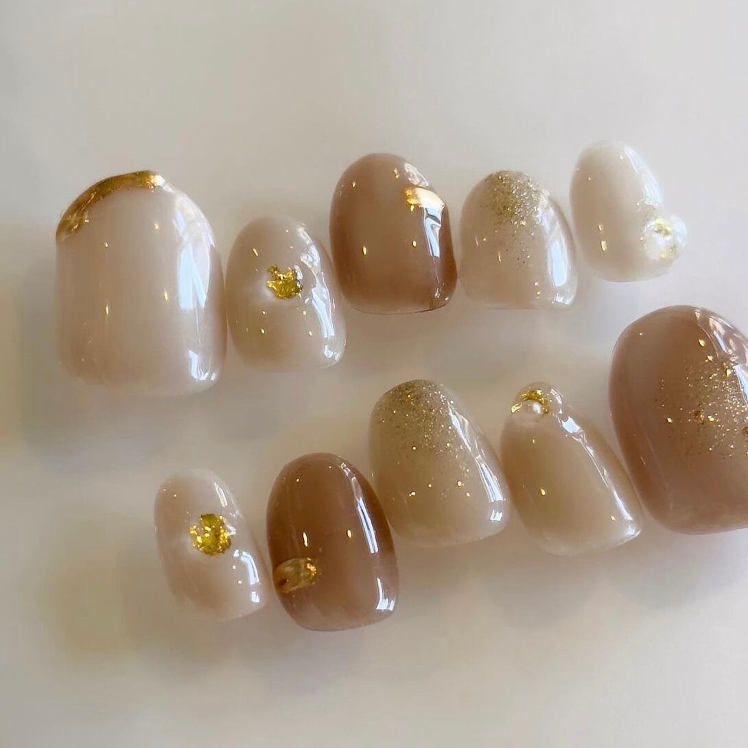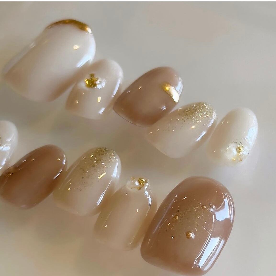 ネイル/ネイルチップ/うるうる/シンプル/うるつや/キラキラ/ぷっくり/ニュアンス/韓国/もやもや/ブラウン/ちゅるん/キラキラ/グレージュ